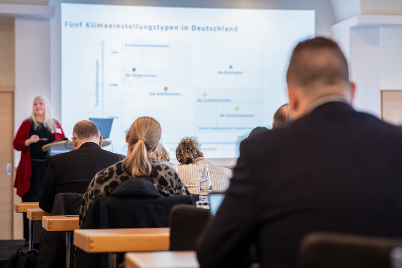 Professorin Daniela Gottschlich von der Hochschule für Gesellschaftsgestaltung unterstrich in ihrer Keynote, dass eine positive und zielgruppengerechte Kommunikation ein zentrales Steuerungsinstrument für gelingende Klimapolitik vor Ort ist. Dabei sei es wichtig, dass die „Minderheit der Ablehnenden nicht als Mehrheit erscheint“. Die Diskussionen mit unterschiedlichen Akteuren müssten aktiv gepflegt und immer wieder angeregt werden. Nur wenn Bürgerinnen und Bürger die Notwendigkeit und den Nutzen kommunaler Maßnahmen nachvollziehen können, entstehe die erforderliche gesellschaftliche Unterstützung, so die Professorin.